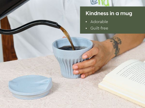 - Enjoy your favorite brew sustainably with the Earth Friendly Rafter Coffee Mug with Lid, a 175mL sipper-style cup made from rice husk and a biocomposite blend of recycled plastic and natural fibers.